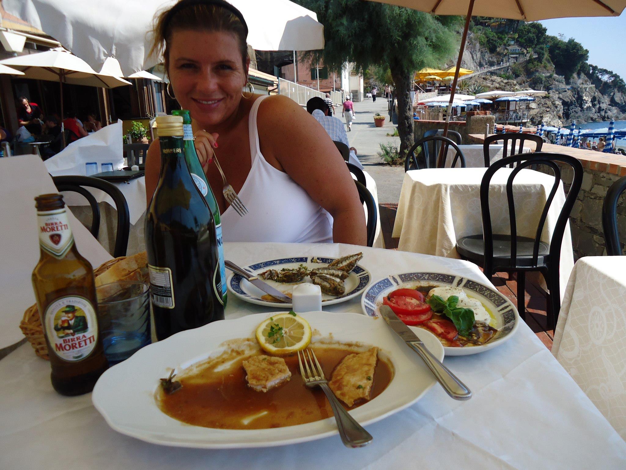 My friend ordered Chicken Marsala and I am eating stuffed Anchovies – something I would have never eaten at home. – Positano, Amalfi Coast, Italy.